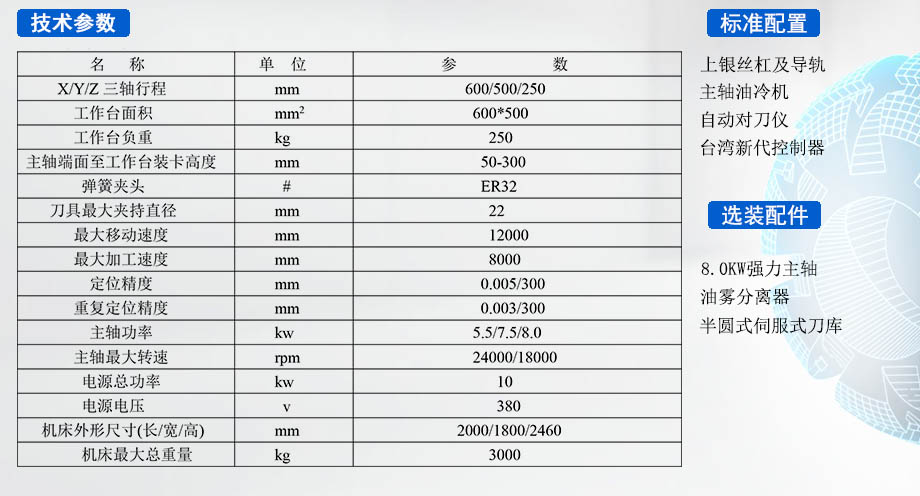自動換刀系統:本機標配自動換刀系統,該系統具備高速自動換刀功能,換刀速度快且刀庫容量大,能夠有效提升加工效率,節約人力成本。